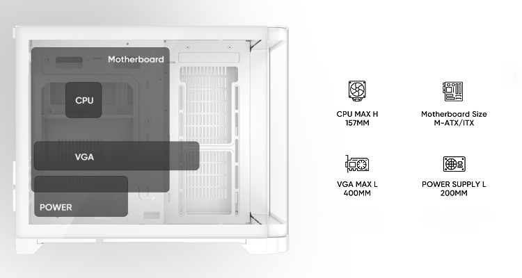 בחלק העליון ניתן להרכיב מאוורר 360 ליצירת מערכת קירור עוצמתית.