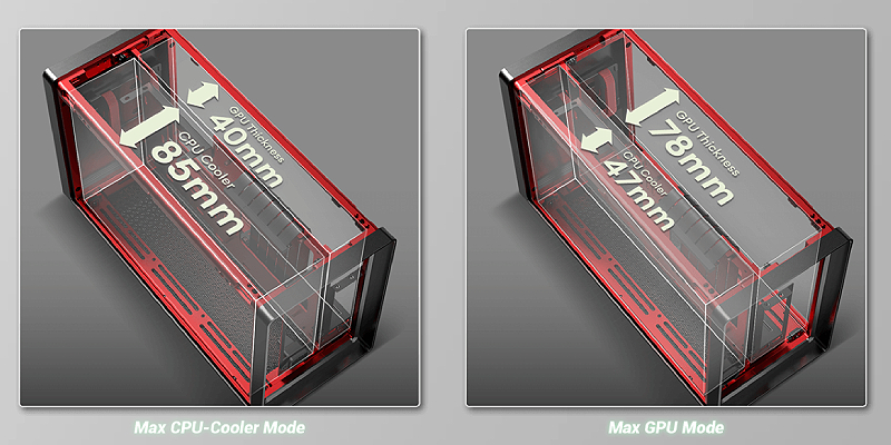 המארז כולל תושבת מרכזית מתכווננת, המאפשרת תאימות עם מגוון גדלים של GPU ו-CPU עבור גמישות רבה יותר במבנה שלך.