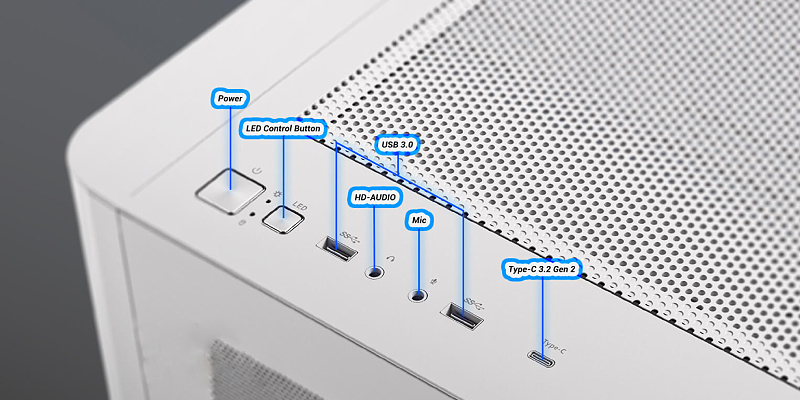 USB 3.0 | Earphone/Mic | USB Type-C | RGB Controller