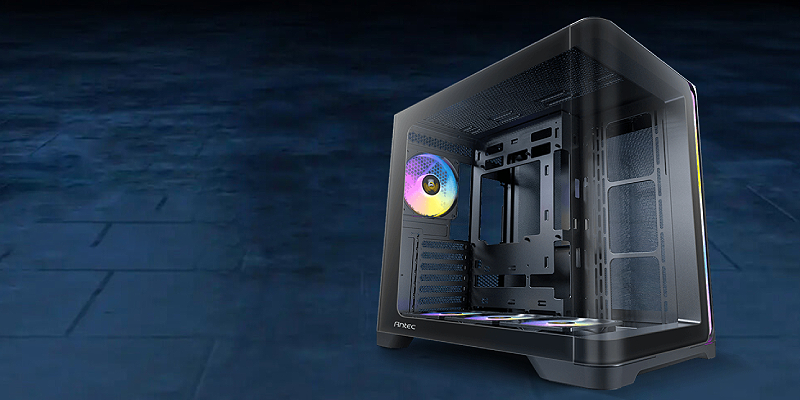 מארז מחשב C5 CURVE ARGB White מבית Antec, בצבע לבן, עם פאנלים מזכוכית מחוסמת בעיצוב קעור ו-4 מאווררי ARGB בגודל 120 מ"מ מותקנים מראש עם בקר PWM מובנה. 0-761345-10226-1