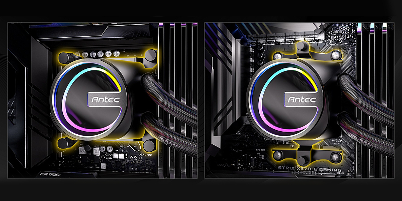 עיצוב ראש משאבת המים בצורת "שלד" גיאומטרית מוסיף סגנון מודרני, משאבת קירור עתירת ביצועים ובסיס נחושת רחב מבטיחים העברת חום יעילה.