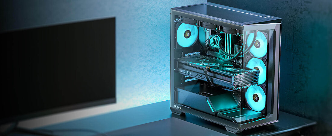 כיסוי ספק הכוח מעוטר בפס תאורה ARGB שיוצר אווירה צבעונית בתוך המארז.