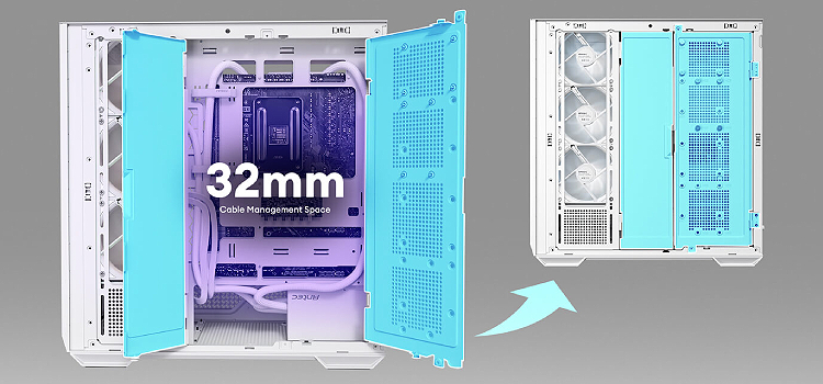 עם מרחב ניהול כבלים של 32 מ"מ וכיסוי דלת נשלף, המאפשר ניהול כבלים ללא הפרעה.