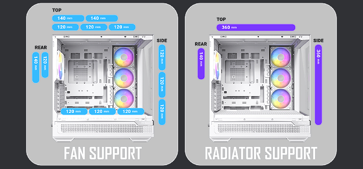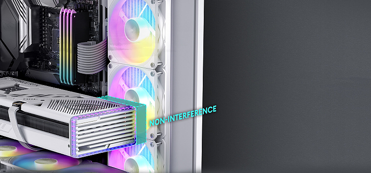 אין הפרעות בין רדיאטור צד בעובי סטנדרטי (52 מ"מ) לבין RTX 4090.