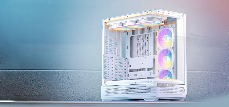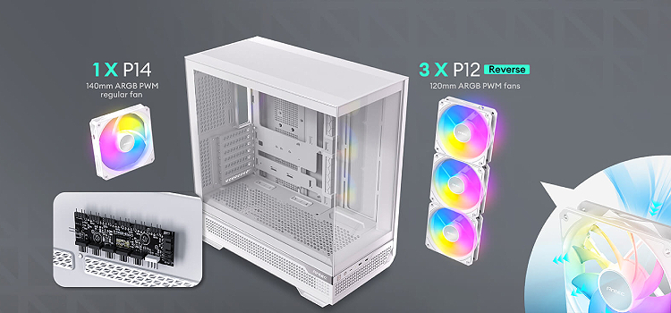 תומך בעד 10 מאווררים, עם שטח גדול של פתחי אוורור מסביב לתא התחתון, המאפשר זרימת אוויר אנכית מלמטה למעלה.