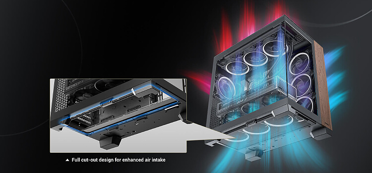 יכול להכיל שלושה מאווררים בגודל 120 מ"מ/140 מ"מ או שני מאווררים בגודל 160 מ"מ כל אחד מלמעלה ולמטה לקירור GPU יעיל.