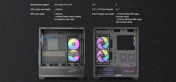 Pre-Installed ARGB PWM Fans: On Right Side 2x120mm & Rear 1x120mm