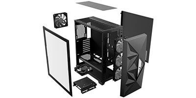| Splash It with Your Color The all-new Dark Fleet DF800 FLUX Mid-Tower ATX gaming case forms a different visual effect by its geometrical mesh design and mirror surface materials. The DF800 FLUX provides the best showcase for your gaming gear with its full-view tempered glass side panel |