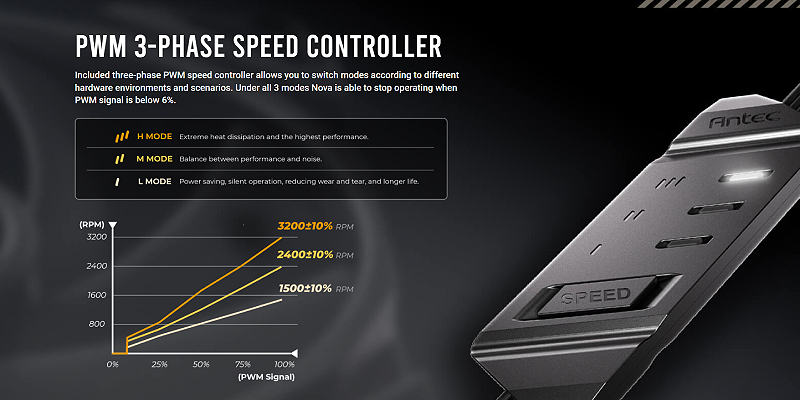 בכל 3 המצבים המאוורר מסוגל להפסיק לפעול כאשר אות ה-PWM נמוך מ-6%.