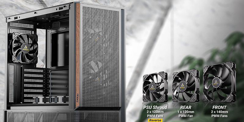 2 × מאווררי PWM בגודל 140 מ״מ בחזית, 2 × מאווררי PWM הפוכים בגודל 120 מ״מ מעל תא ספק הכוח, 1 × מאוורר PWM בגודל 120 מ״מ מאחור.