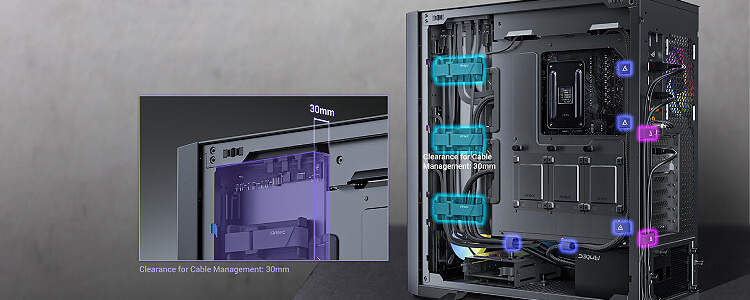 ניהול כבלים מרווח לארגון יעיל ונוח.