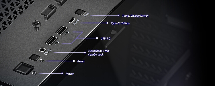 על ידי לחיצה על כפתור המתג בפאנל ה-I/O, המשתמש יכול לראות את טמפרטורת המעבד וכרטיס המסך.