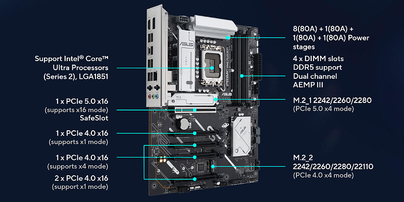 לוחות האם מסדרת ASUS PRIME מתוכננים במומחיות כדי לממש את מלוא הפוטנציאל של מעבדי Intel® Core™ Ultra העדכניים ביותר (סדרה 2).