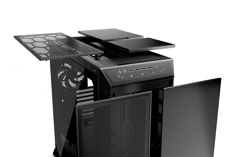 With its remarkably large dimensions, Dark Base Pro 901 sets no limits on creativity. The front can fit a radiator of up to 420mm and additional fans can be installed throughout the case, even on the side panel.