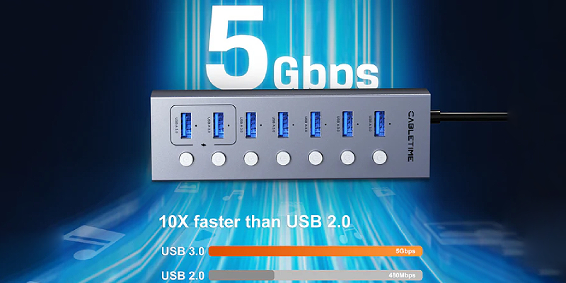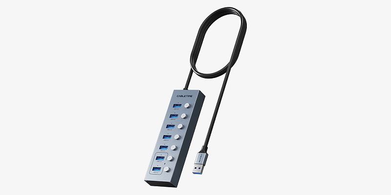 הרחב את היכולות של המחשב הנייד שלך עם מפצל USB 3.0 בעל 7 יציאות.