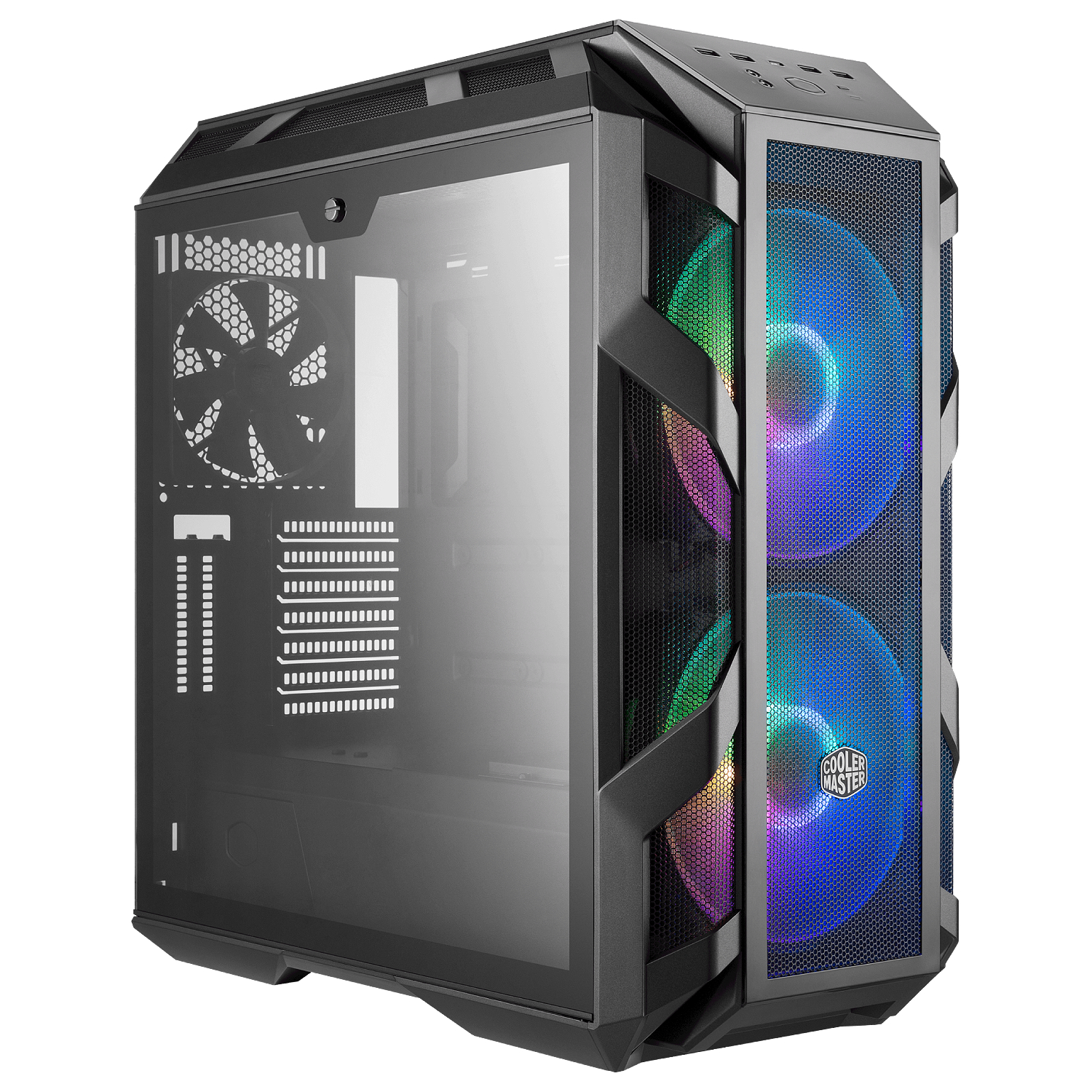 Edge-to-edge glass side panels on both sides, a glass top panel, and a glass front panel offer a clear and comprehensive system view.