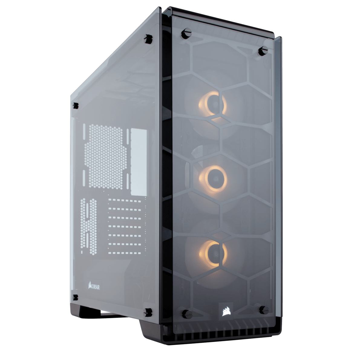 Corsair Crystal 570X RGB Case. Put every component of your build on display in the CORSAIR Crystal Series 570X RGB ATX Mid-Tower Tempered Glass Case, with immaculate tempered glass enclosing the entire chassis. CC-9011098-WW