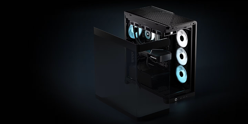 מצויד בשלושה מאווררי RS-R ARGB עם סיבוב הפוך (Reverse) ושליטה ב-RGB, זרוע ייצוב נגד שקיעה לכרטיס גרפי, ותאימות ללוחות אם עם מחברים הפוכים.