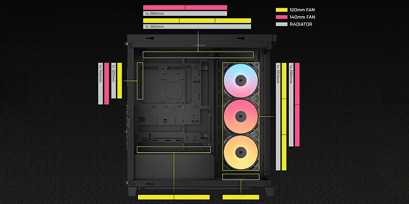 התאם אישית את מערכת הקירור שלך עם מקום לעד 10 מאווררי 120 מ"מ,
