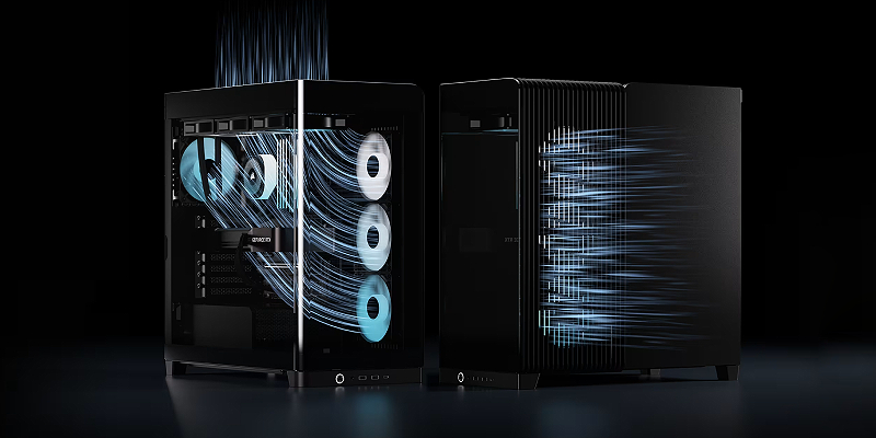 המאווררים שואבים אוויר קר מבחוץ דרך פאנל הצד, ופולטים אוויר חם החוצה מהפנאל העליון כדי לשמור על פנים המארז קריר.