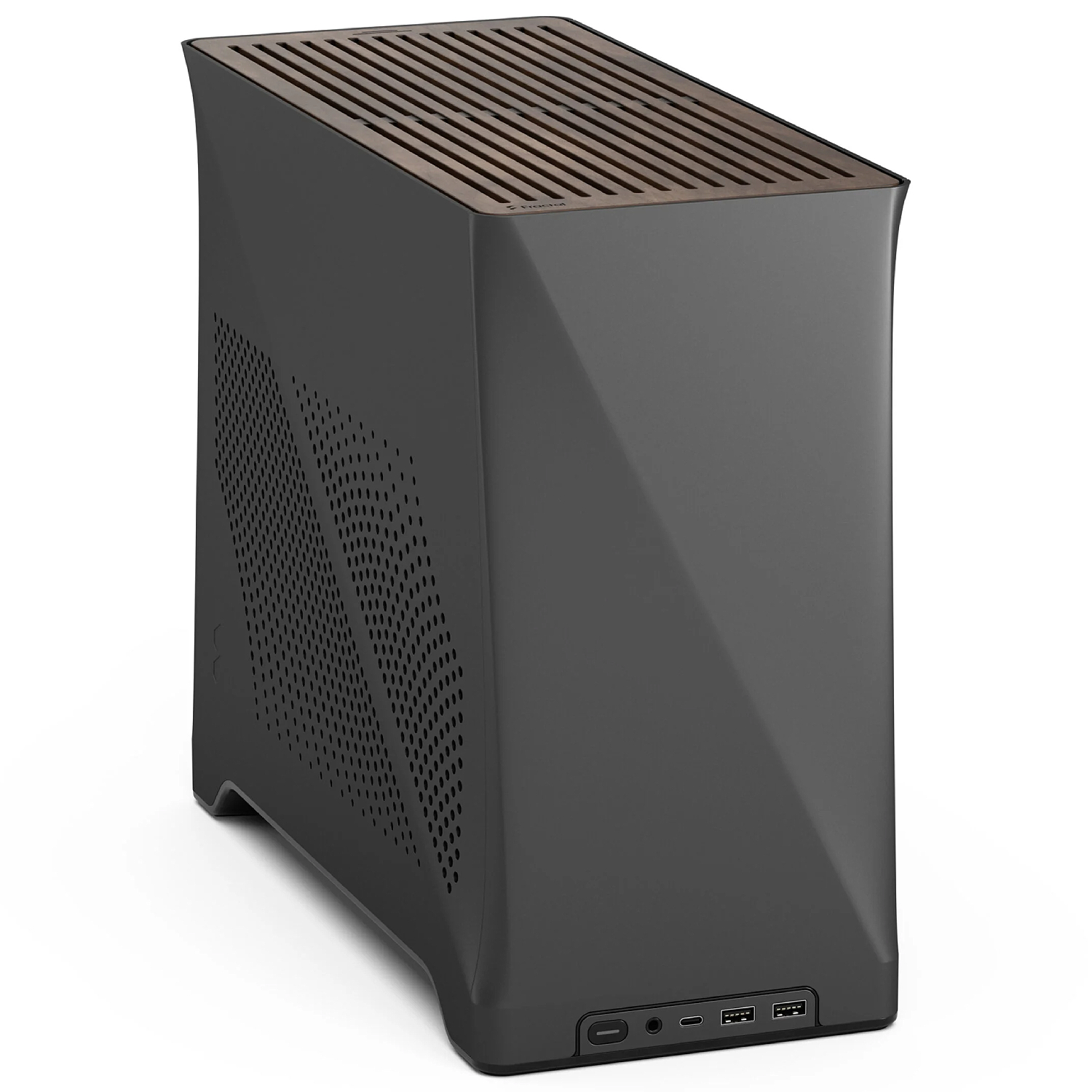 מארז מחשב Era 2 מבית Fractal Design בצבע אפור פחם Charcoal FD-C-ERA2N-02, מארז קטן וקומפקטי המשלב חדשנות עיצובית עם יכולות הנדסיות, כולל פאנל אוורור עליון מהודר ומגנטי מעץ אגוז מלא, עם תאימות לקירור נוזלי ואוורור בחמישה צדדים.