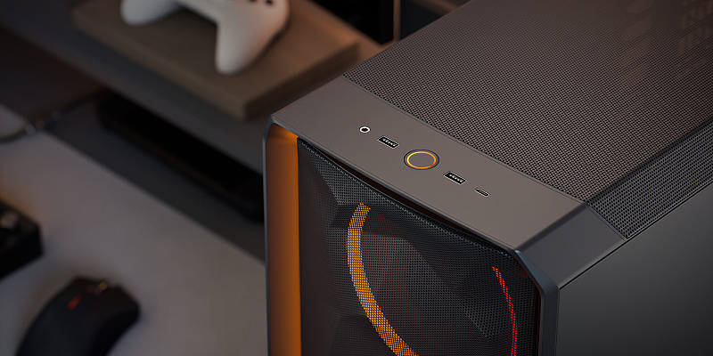 חבר את המכשירים שלך בקלות עם פאנל I/O עליון, הכולל יציאת USB Type-C בקצב 20Gbps, שתי יציאות USB-A ושקע אודיו משולב.