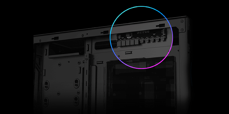 המארז כולל פאנל צד מזכוכית מחוסמת שחורה בעובי 4 מ"מ, המדגיש את רכיבי המחשב וה־RGB שלך בצורה מרהיבה.