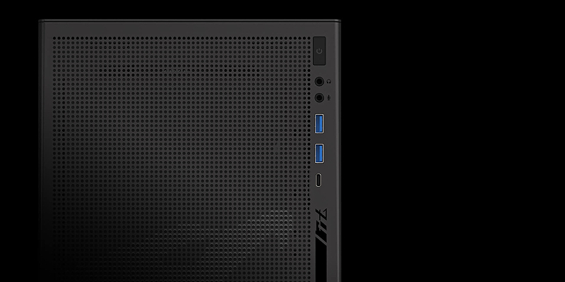 כולל חיבור USB 3.2 Gen2 מסוג Type-C עם מהירות העברה של עד 10Gbps, שני חיבורי USB 3.0, יציאות שמע, וכפתור הפעלה.