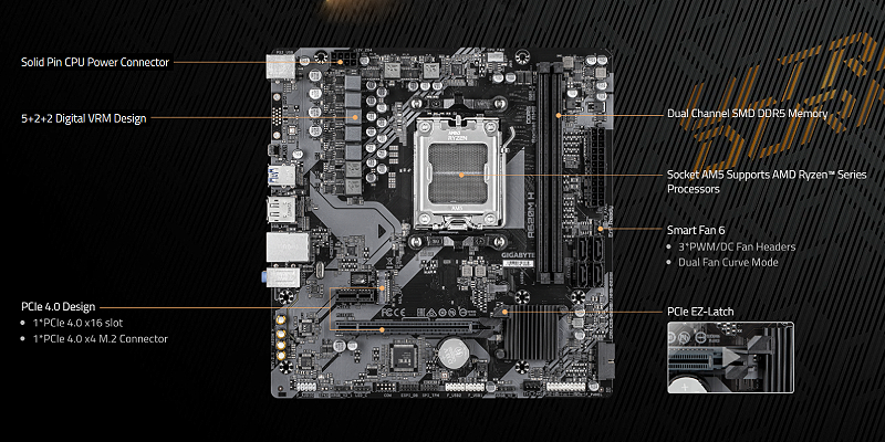 AMD Socket AM5:Supports AMD Ryzen™ 7000 / Ryzen™ 8000 / Ryzen™ 9000 Series Processors