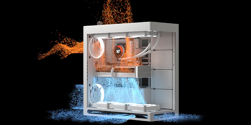 הם יצרו את המארז הזה עם מבנה היברידי המספק זרימת אוויר מרכזית ויעילה במיוחד של GPU עם עיצוב תאים כפול