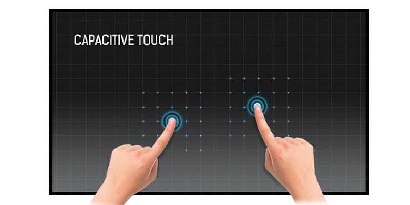נגיעה במסך מזוהה כיוון שהמאפיינים החשמליים של רשת החיישנים משתנים כאשר אצבע אנושית מונחת על הזכוכית.