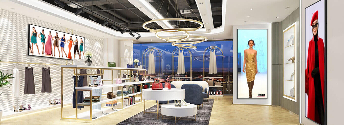 מסך שילוט דיגיטלי מקצועי בגודל 32 אינץ' מבית IIYAMA LH3260HS-B1AG ברזולוציית FHD עם מערכת הפעלה אנדרואיד ו-iiSignage. מסך דק במיוחד בעובי 40 מ"מ בלבד.