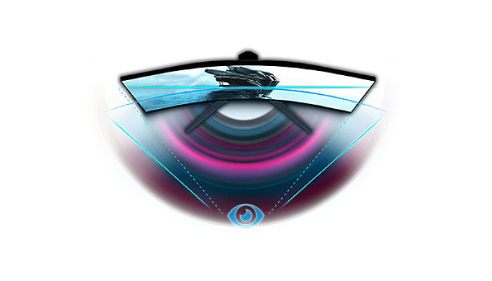הקימור מאפשר זווית צפייה מקיפה וטבעית יותר ממה שתהיה לך עם מסכים שטוחים המסודרים זה לצד זה.