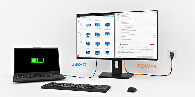 חיבורי USB-C (בהספק טעינה של 95W), HDMI, DisplayPort ומפסק KVM מובנה מאפשרים לנהל בקלות מספר התקנים תוך כדי טעינת המחשב הנייד.
