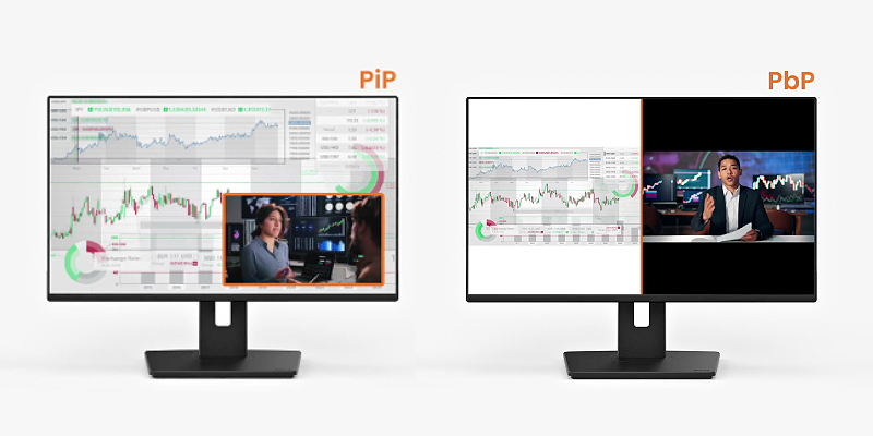 מצבי PiP (תמונה בתוך תמונה) ו־PbP (תמונה לצד תמונה) מאפשרים להציג תכנים משני מקורות במקביל – לניהול יעיל יותר של משימות מרובות.