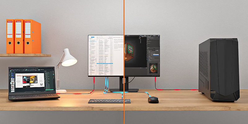ניתן לעבור בקלות בין מספר מחשבים באמצעות מסך, מקלדת ועכבר אחד – לניהול יעיל וזריז של ריבוי משימות.