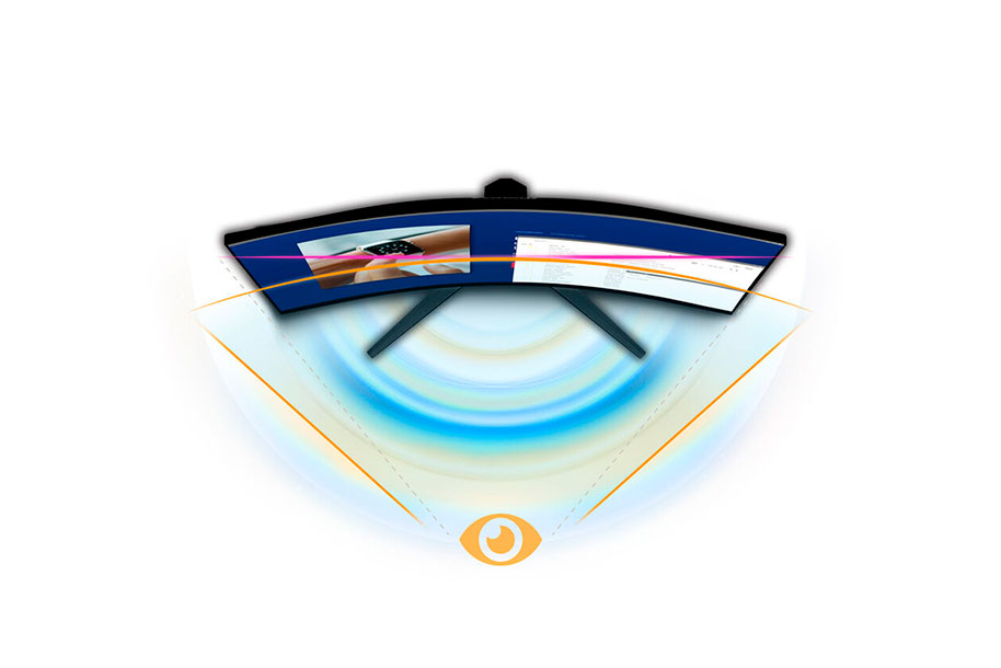 עקמומיות 1500R של המסך מפחיתה את העומס על העיניים תוך מתן חווית צפייה מציאותית. זה מאפשר זווית צפייה מקיפה וטבעית יותר ממה שתהיה לך עם צגים שטוחים מסודרים זה לצד זה. התוצאה היא חוויה סוחפת יותר אשר מגבירה את הפרודוקטיביות והמיקוד בין אם מדובר בעבודה, משחקים, בידור, עריכה או יותר.