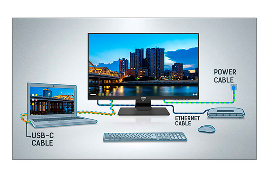 הDOCK מאפשר לך לחבר את המחשב הנייד שלך עם כבל בודד למסך כדי לוודא שהוא טעון ומחובר לרשת קווית והאות מהמחשב הנייד נשלח לצג. עם יציאות USB נוספות, ניתן לחבר את העכבר, המקלדת או מצלמת האינטרנט שלך גם לצג. הכל הודות לכבל יחיד המחבר את המחשב הנייד* לתחנת העגינה USB C בצג.
