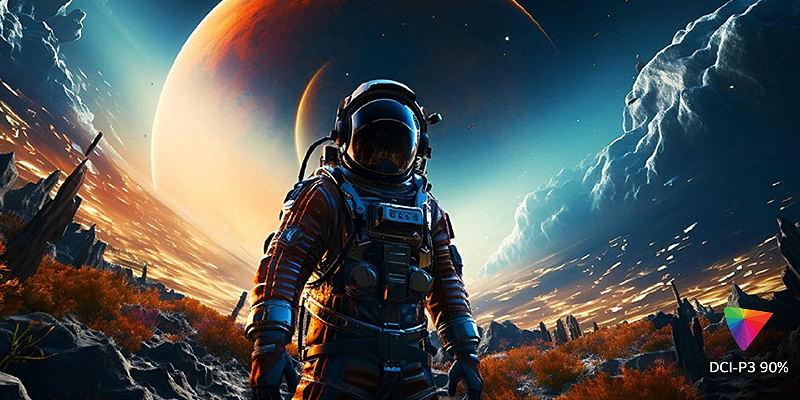 מסך 4K UHD (3840x2160) עם כיסוי צבעים של עד 90% מ-DCI-P3 מספק יחס ניגודיות גבוה וצבעים מדויקים.