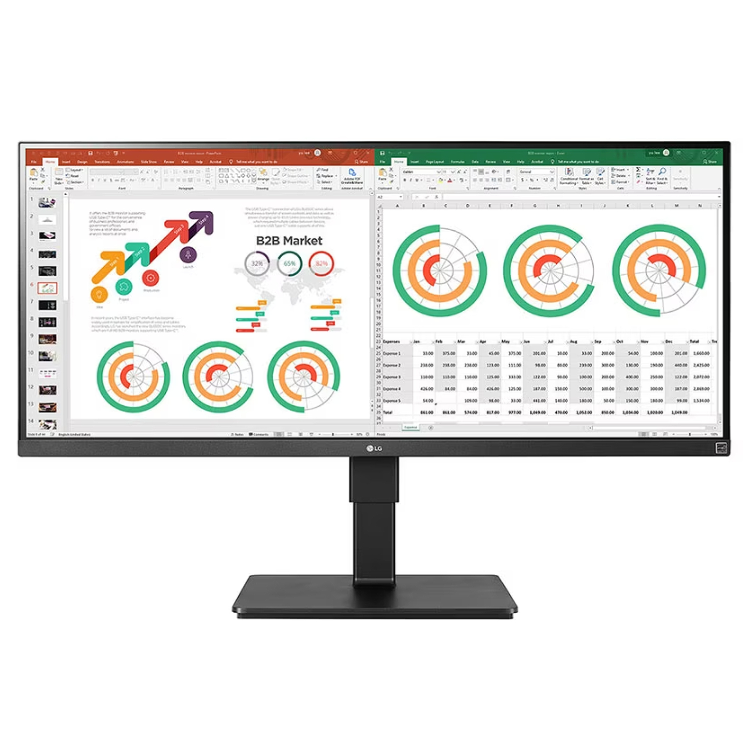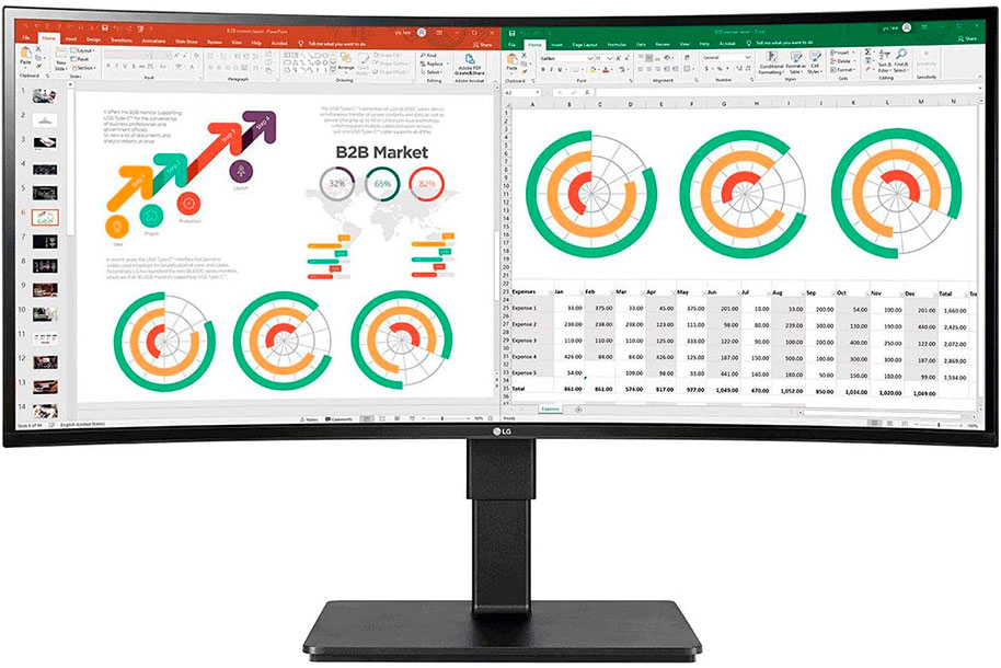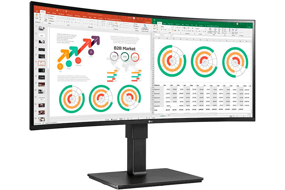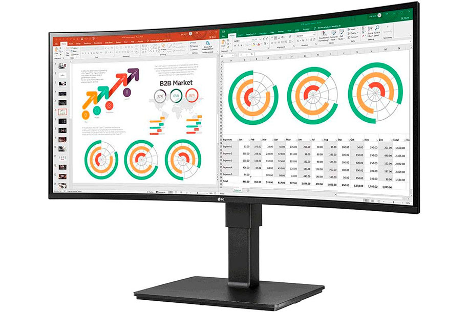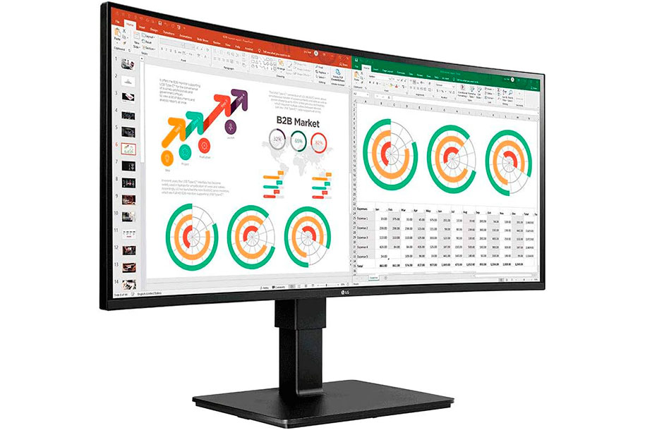 The UltraWide™ QHD screen (3440x1440 resolution, 21:9 aspect ratio) of 34BN770-B is great for work. It allows you to have multiple documents on your screen at one time.