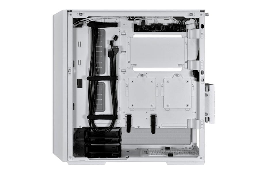 Set lower, the motherboard leaves a 63mm thick gap at the top to install radiator/fan combos, ideal for AIOs or custom water cooling.