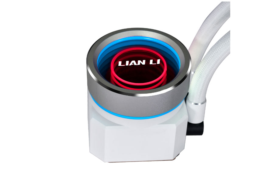 The Galahad II Trinity series’ pump cap has three interchangeable designs, each with a unique look and two rings of colors that can be individually controlled with different lighting effects.