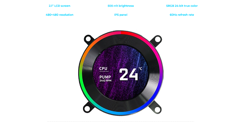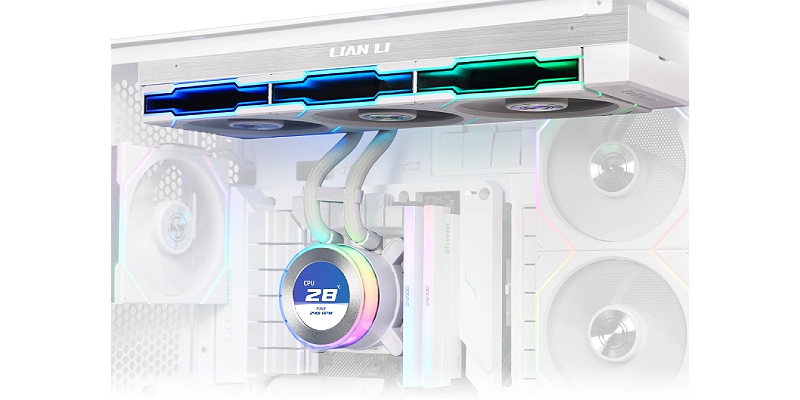 קירור נוזלי למעבד Lian-Li HydroShift II LCD-C 360TL White, עם מסך מסך IPS בגודל 2.1 אינץ' ברזולוציה חדה של 480×480, קצב רענון של 60Hz ובהירות של 500nits, מראה מרהיב עם קירור עוצמתי במיוחד. GHS2LCD36TW
