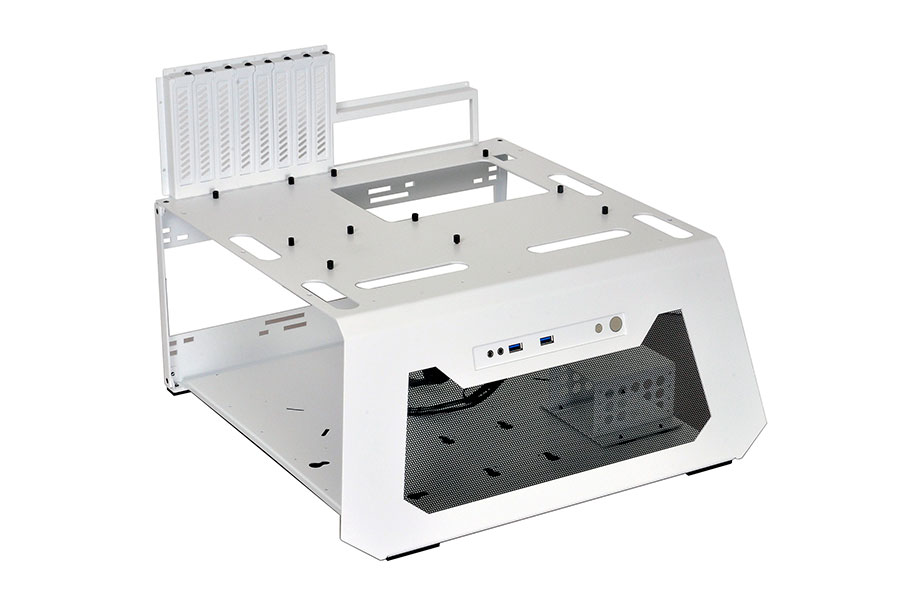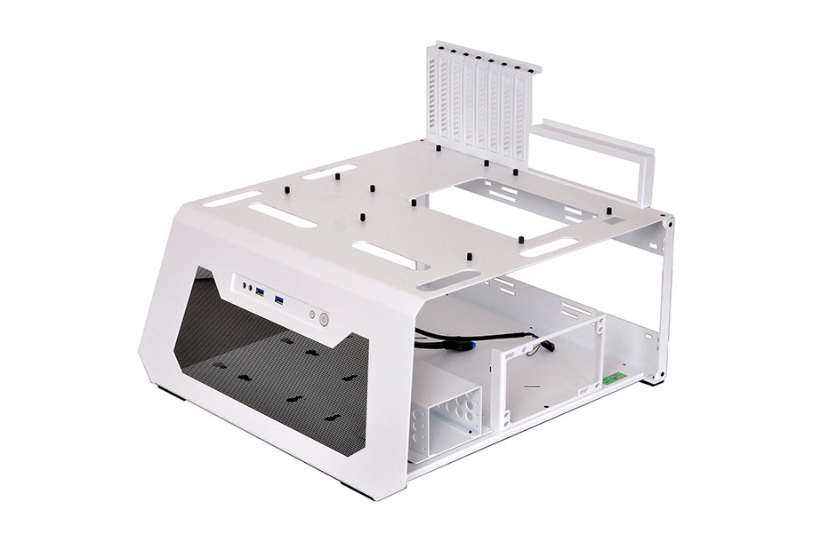 The T60 Test Bench mounts Standard ATX & Micro-ATX motherboards, 5.25″ optical drives, 3.5″ and 2.5″ hard drives, and a standard ATX PS/2 power-supply unit. The open design makes it easy to switch components, mod, and service.