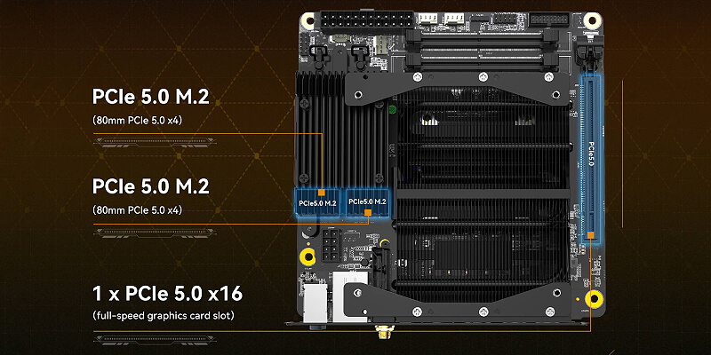 ה-mini-ITX M/B הוא לוח ה-MoDT (Mobile on Desktop) הראשון המופעל על ידי מעבד AMD Ryzen 9 7945HX מובנה, עם חריצי PCIe5.0 M.2 כפולים.
