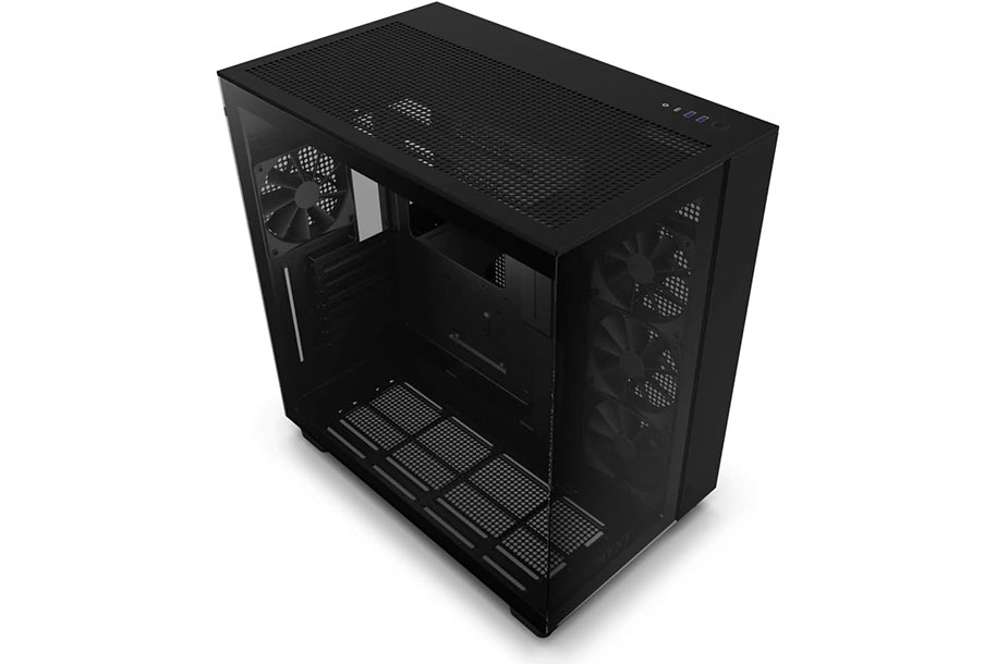 Perforated top and side panels direct filtered air through the case to cool down components and enhance performance.