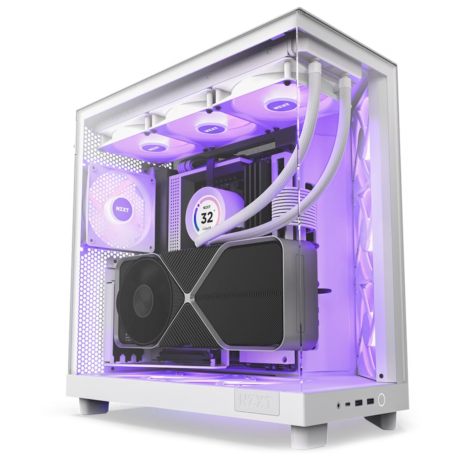Includes three pre-installed 120mm RGB fans positioned at an ideal angle for optimal out-of-the-box cooling and vibrant RGB lighting.