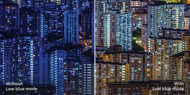ההגדרה של Philips Low Blue, משתמשת בטכנולוגיית תוכנה חכמה כדי להפחית אור כחול מזיק.