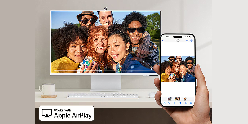 עם AirPlay מובנה, ניתן לשקף אפליקציות, מסמכים ואתרי אינטרנט מה־iPhone, iPad או Mac שלך – בקלות וללא כבלים.