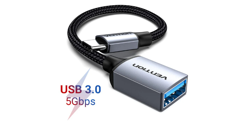 מתאם מ-USB 3.0 C זכר ל-USB A נקבה באורך 15 ס"מ עשוי סגסוגת אלומיניום.